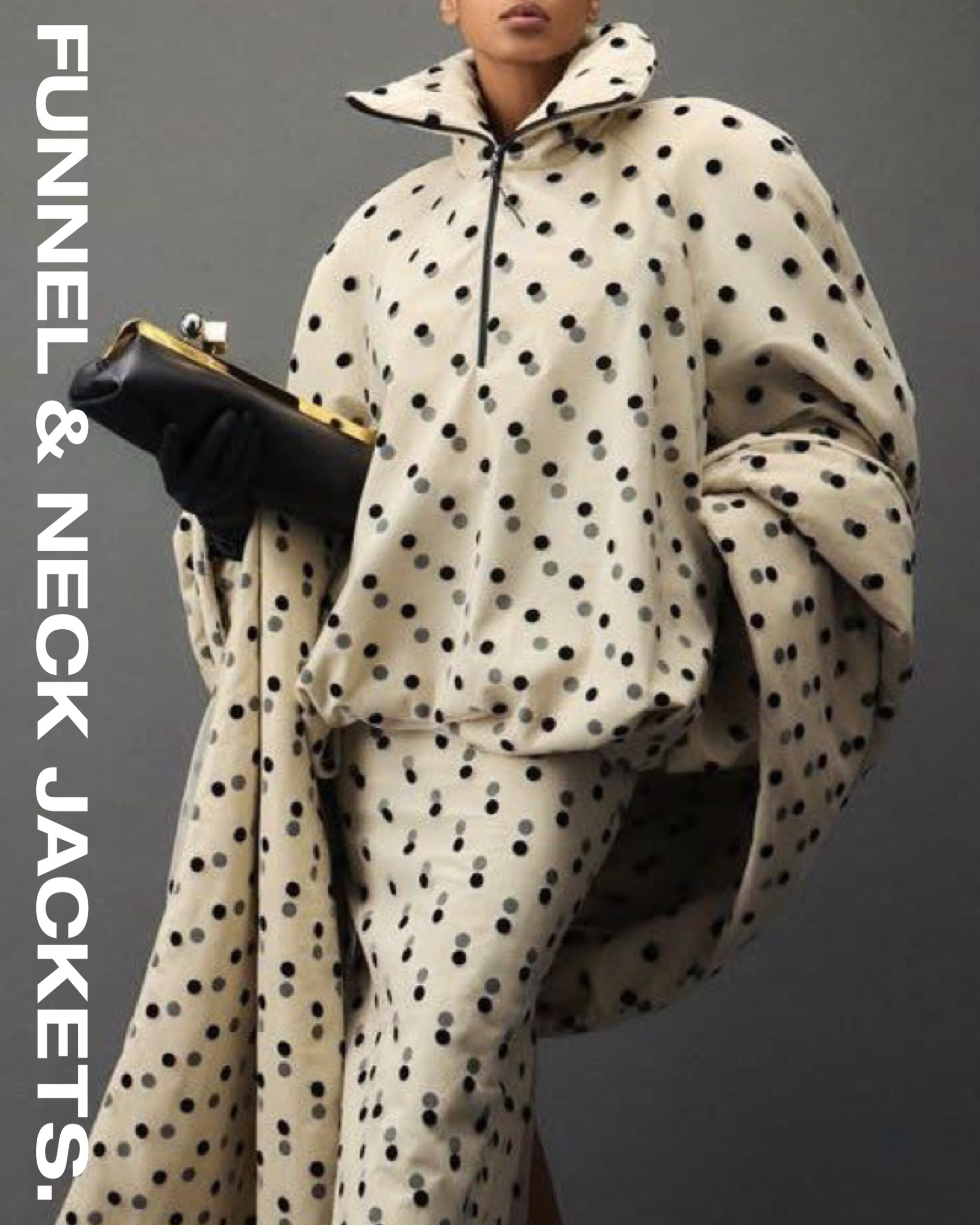 Cette saison, les funnel neck jackets (ou vestes à col montant) s’invitent partout : sur les trenchs courts, les bombers et les vestes en cuir. Leur col haut et structuré protège du vent tout en sculptant la silhouette, faisant de ces vestes des pièces fortes, à la fois pratiques et modernes