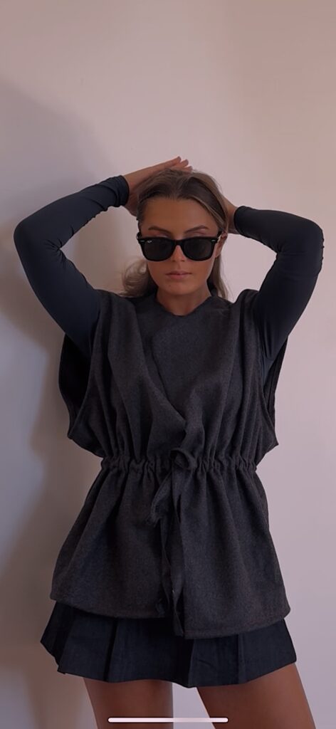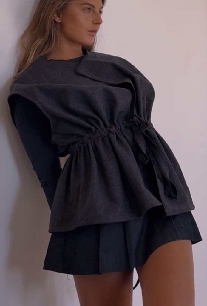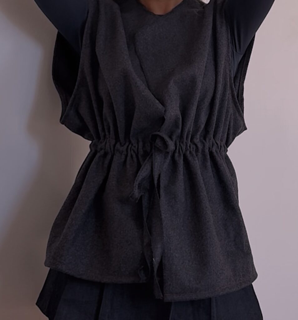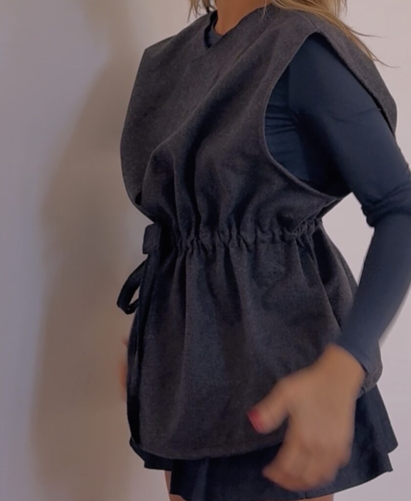 Coupe ample avec ruban à la taille permettant d’ajuster le volume selon vos envies.